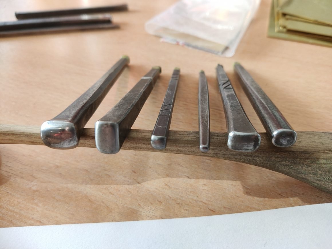Les marques à frapper sont faites d’ acier durci pour ne pas être aplaties quand elles sont utilisées sur du métal. La frappe (le poinçon) doit toujours être plus dure que le métal dans lequel l’impression sera apposée. Différents types d’acier sont disponibles selon leur dureté et leur durée de vie.Nous utilisons principalement de l’acier à outils.