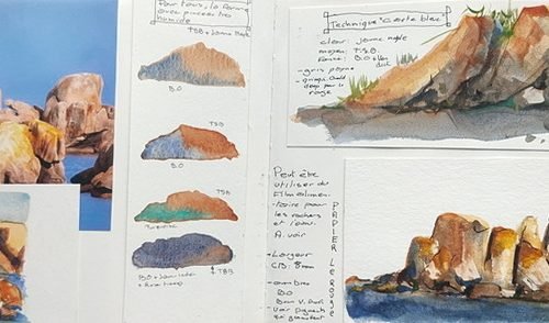 -Travailler en couches légères pour préserver la transparence typique de l’aquarelle.