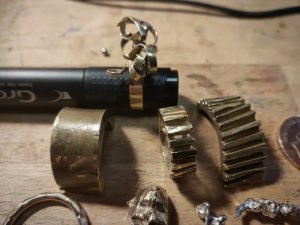 Attention : le but de ces ateliers n’est pas de repartir avec une œuvre à mettre à votre doigt (bien qu’il soit possible de travailler à votre projet dans les limites du thème de l’atelier) mais bien d’acquérir des techniques et de les expérimenter afin de les utiliser dans vos prochains bijoux. Ce choix vous permet d’aborder la séance plus détendu sans le stress d’avoir quelque chose à « produire » et sans la moindre « compétition » avec les autres participants .