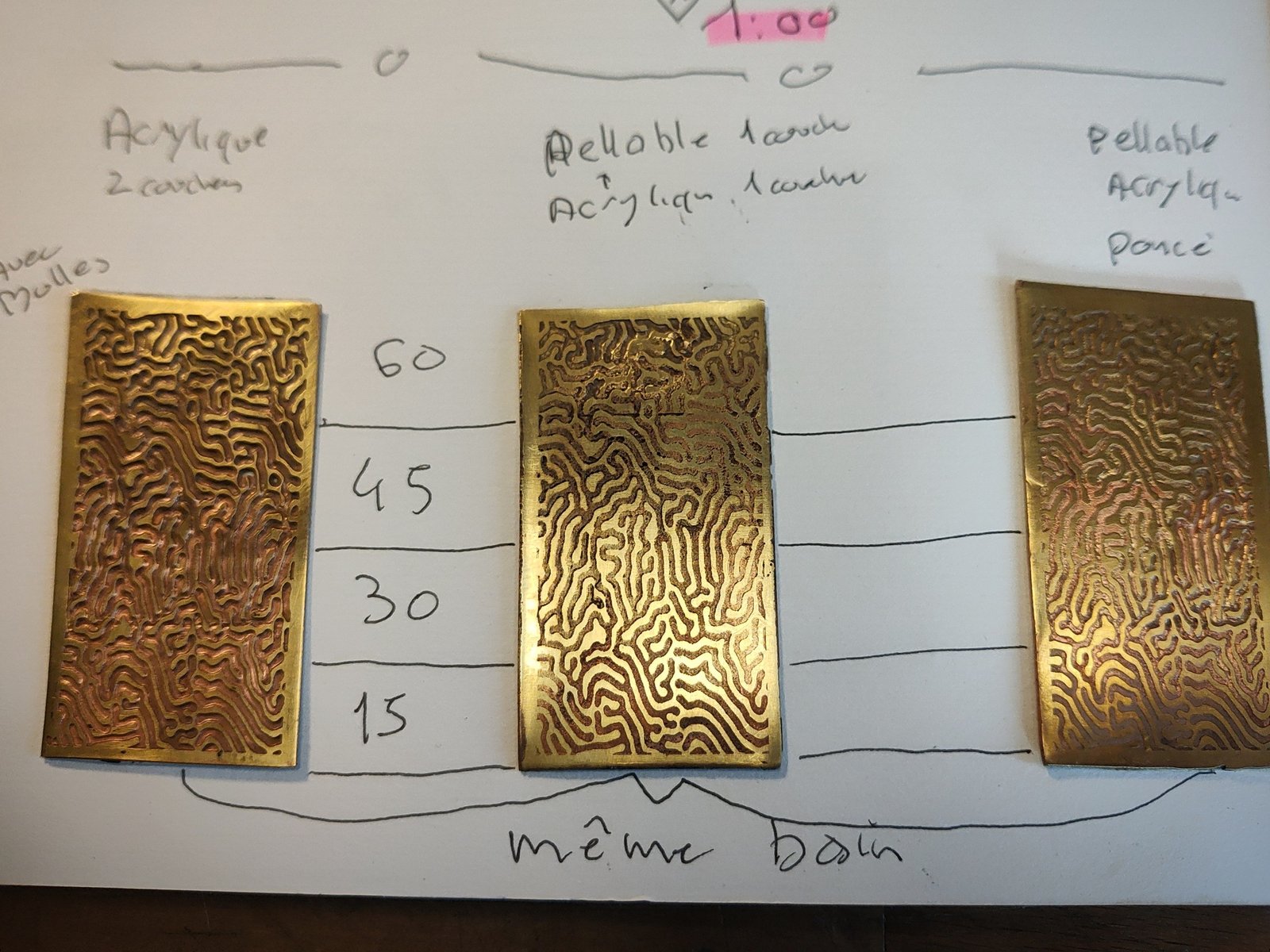 la gravure au perchlorure de fer, la gravure au stylet , la gravure à l’acide sur métal (eau-forte) …